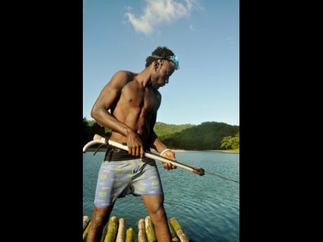 To our surprise, we spotted a few wild deer scampering in the bushes, and our captain explained that they may have escaped from a petting zoo during Hurricane Gilbert in the '80s and multiplied. We pass cows and goats grazing, and blue and white herons are making the most of the sunny Sunday evening. There are very few people whom we encounter on this majestic river that is making its way from the Blue Mountain range to the Caribbean Sea. We buy Red Stripe Beer and cold drinks from a lady selling along a clearing, and we stop to chat with a few local guys who are fishing for Sunday dinner. Odain Thomas, 26, is a spear fisherman and he says he's on the river to catch mullet, snook, perch, and grunt.