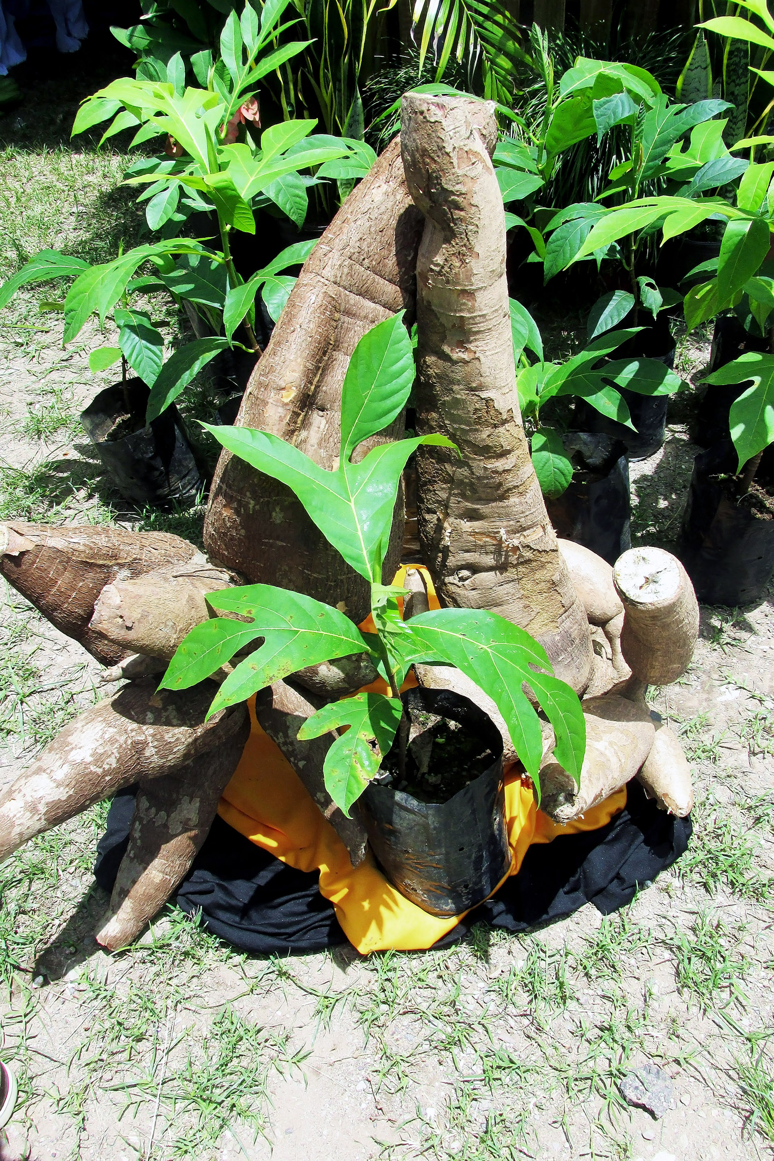 "We are pushing out cassava. You know that Red Stripe is now using cassava in their production, and a lot of people are now moving from white flour and moving on to cassava flour, breadfruit flour, and so we are pushing the cassava," Oates said, pointing to massive pieces of cassava produced by the college.