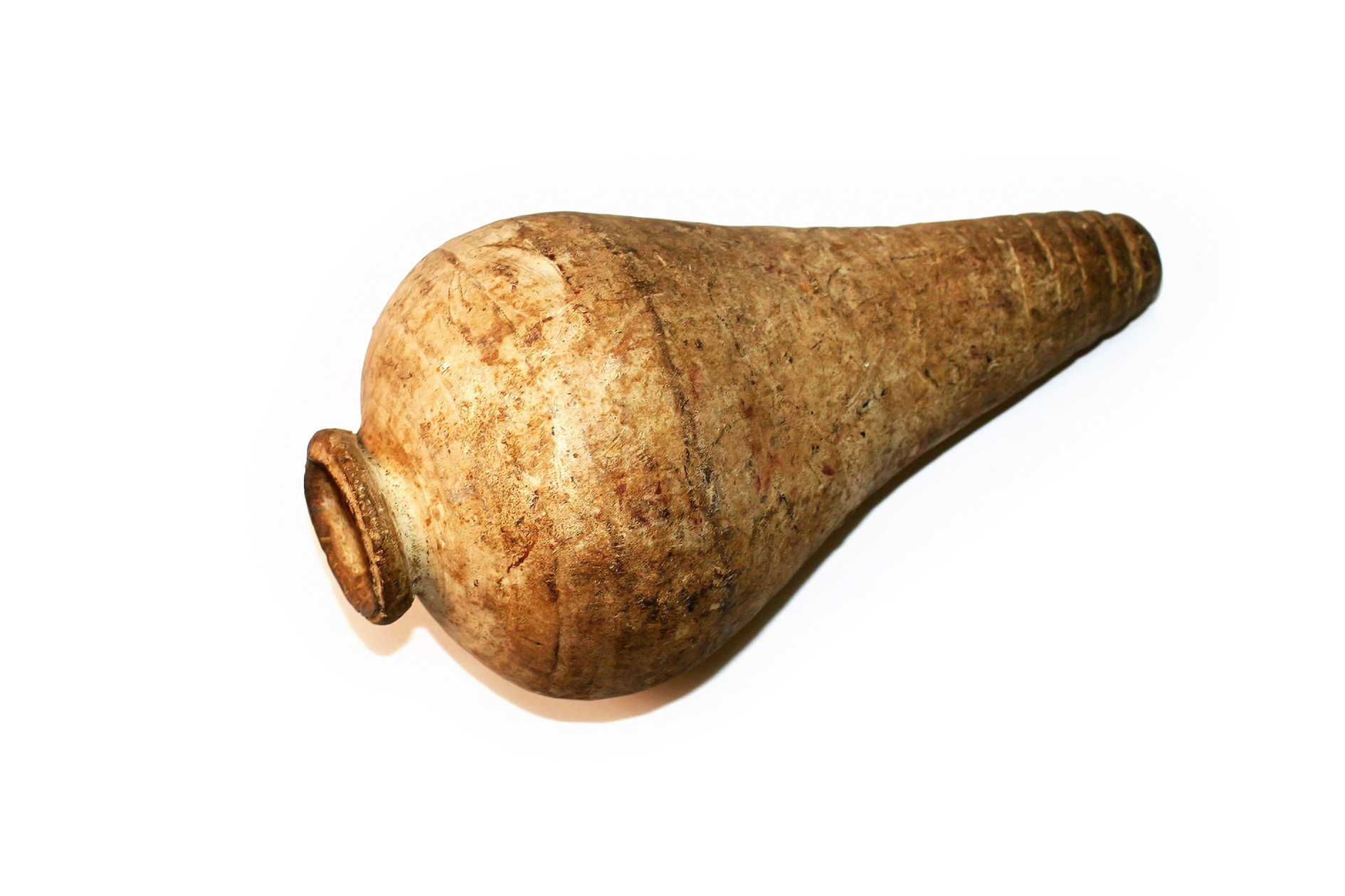 The olive jar has been identified as belonging to the 'late style of Olive Jars'. The late style of olive jars are said to be the most difficult to identify because of the major variations in shape and surface treatments. This particular jar (pictured) is described as having an attenuated egg-shape with a small flat bottom. Jars with this form were said to be made on a potter's wheel in two pieces and joined together This Olive jar (pictured) is one of the many important artefacts that was excavated from the underwater city of Port Royal, during the 1967 excavations led by Robert Marx.