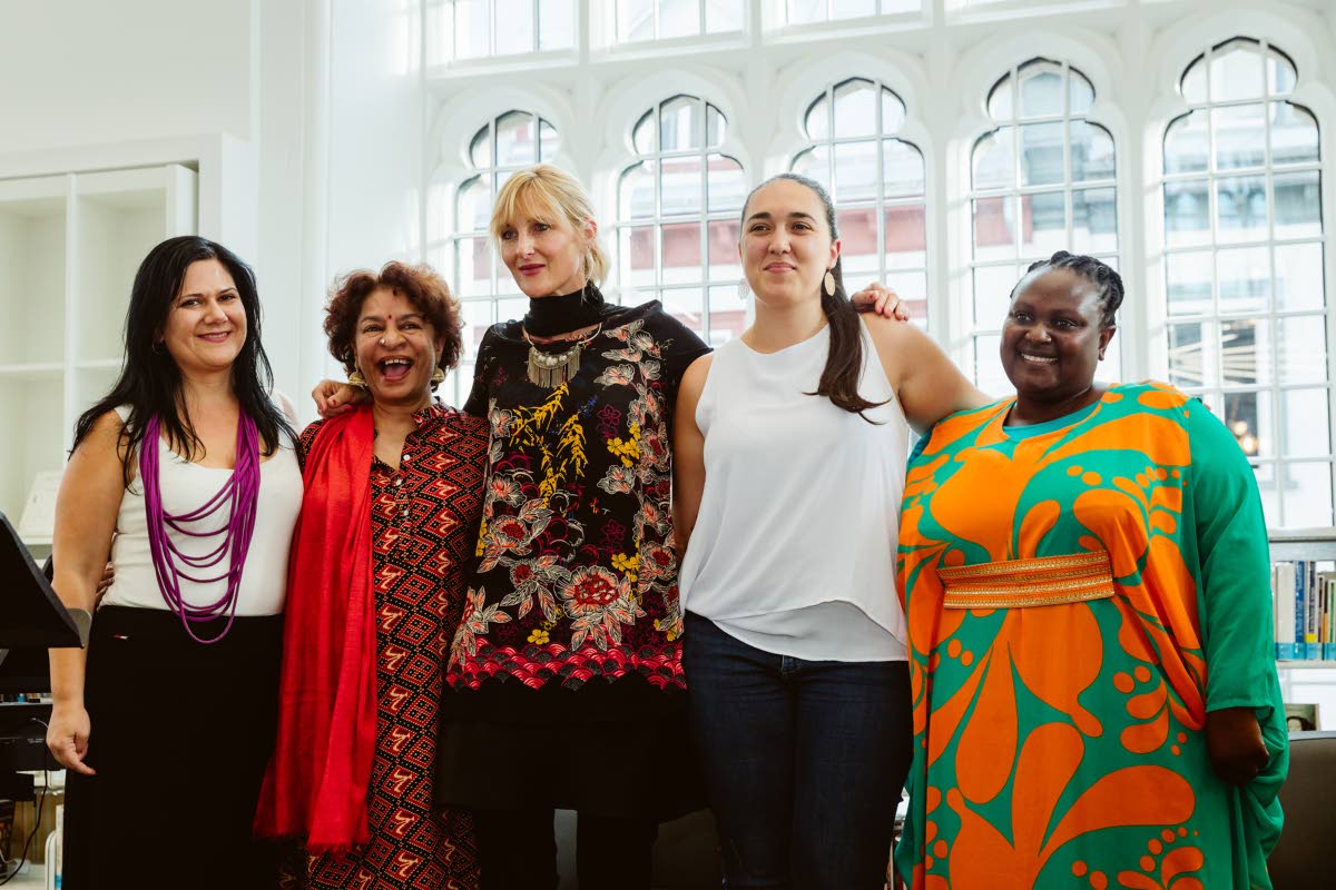 Five regional winners of 2019 Commonwealth Book Prize (from left): Constantia Soteriou, Saras Manickham, Harley Hern, Alexia Tolas, Mbozi Haimbe.
