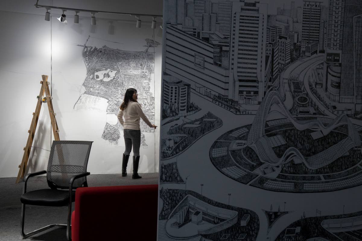 Yang is currently working on a wall-size aerial view of Wuhan under lockdown, with individual residents represented by black ink dots. It’s an expression of their unity in pulling through the crisis as well as unseen pain.