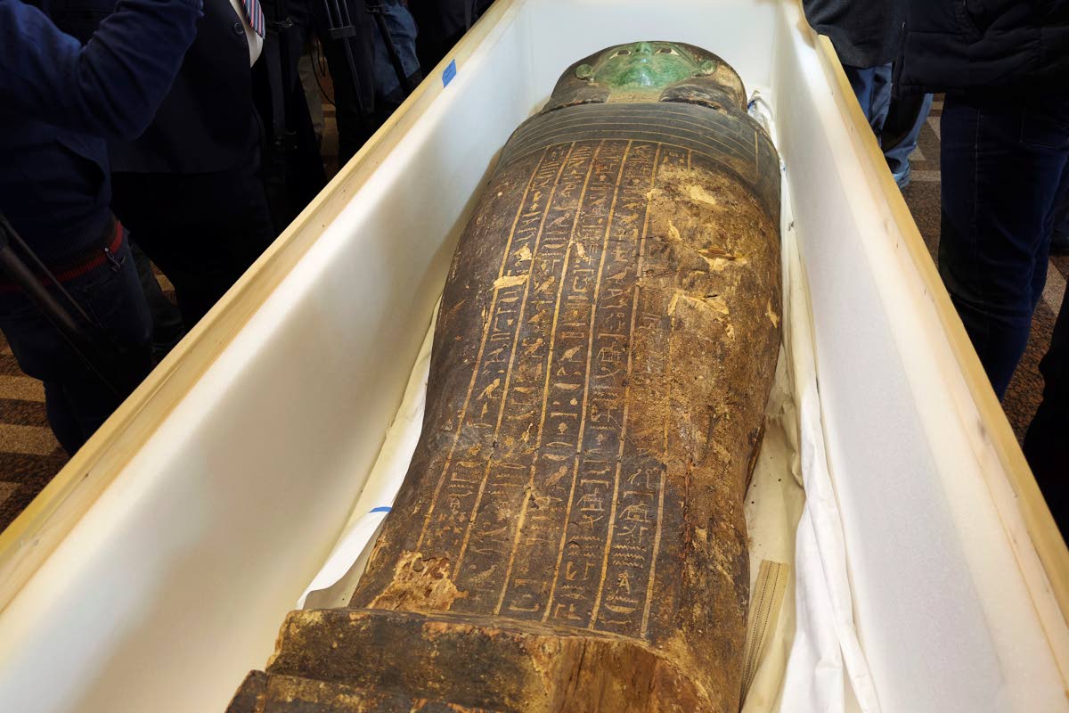 The handover came more than three months after the Manhattan District Attorney’s Office determined the sarcophagus was looted from Abu Sir Necropolis, north of Cairo. It was smuggled through Germany into the United States in 2008, according to Manhattan District Attorney Alvin L. Bragg.