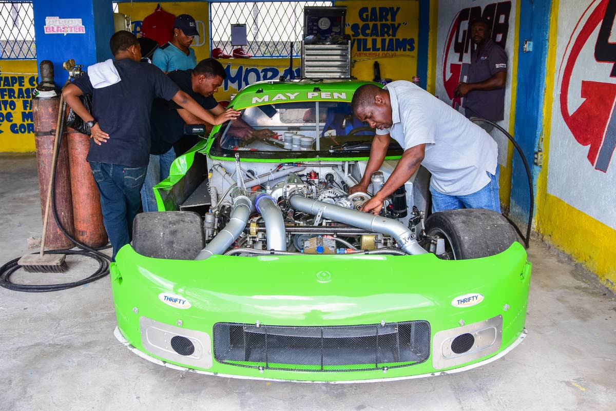 Checking on the heart of the May Pen Ice Mazda RX7.