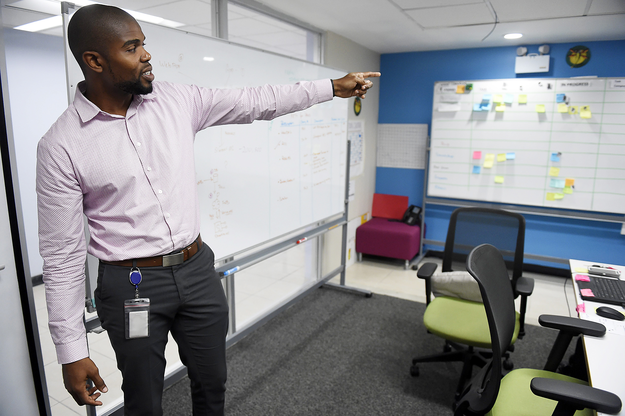 At the helm within the ever changing working space at the lab - which is configured for comfort, replete with couches, bean bags and sticky pad-adorned kanban boards or white boards used to track the planning process - is 36-year-old John-Matthew Sinclair, who is now five months into the job as programmer and tasked with building the Agile team.