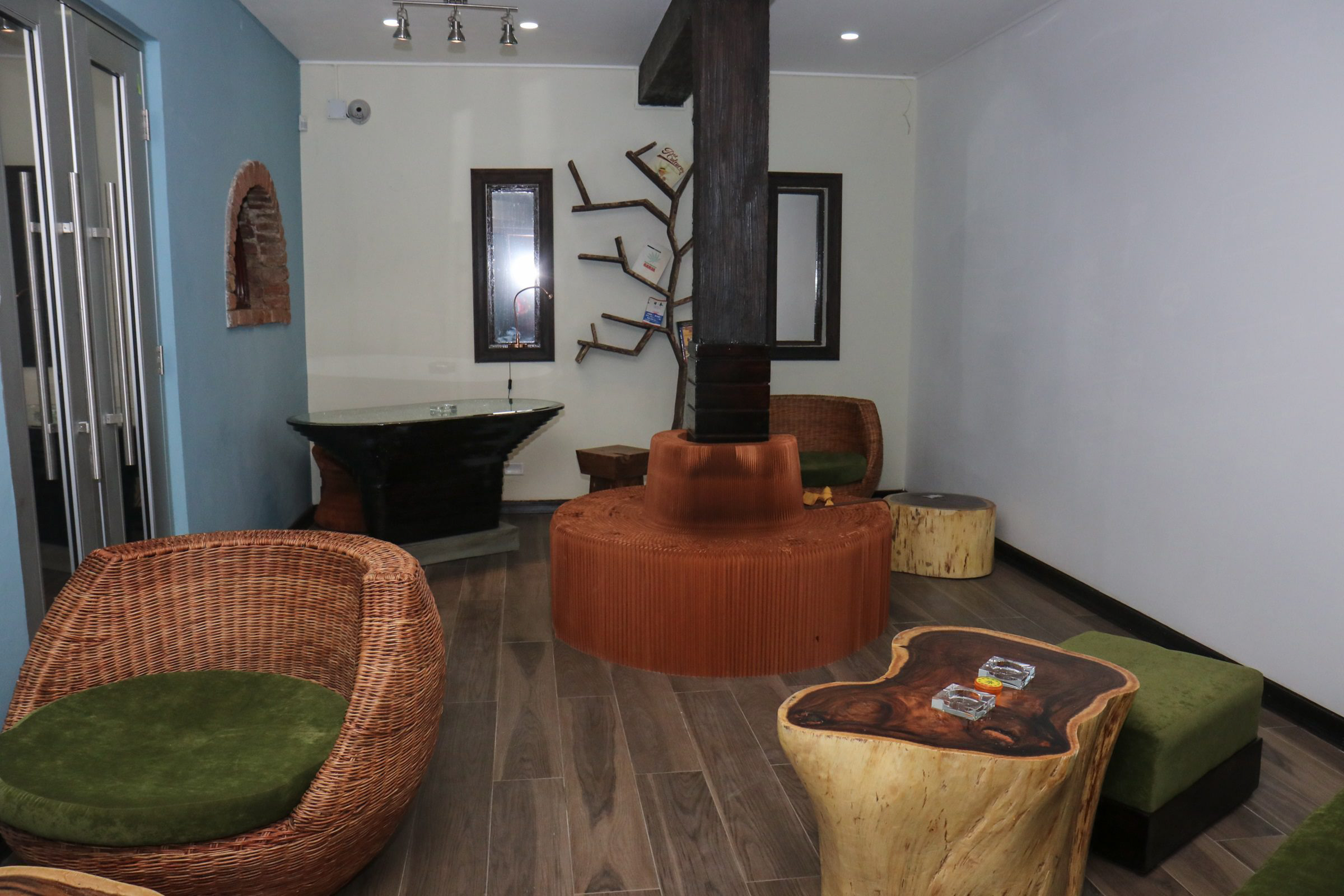For now, the couple describes the business on the Gloucester Avenue Hip Strip as the semblance of 'ragamuffin meets elegance' - of Chris, a former member of the reggae band Nomadz, and Maria, whose avant-garde style is depicted in the fixtures and locally made furniture that dresses 2727. That section of the herb house is a non-smoking area.