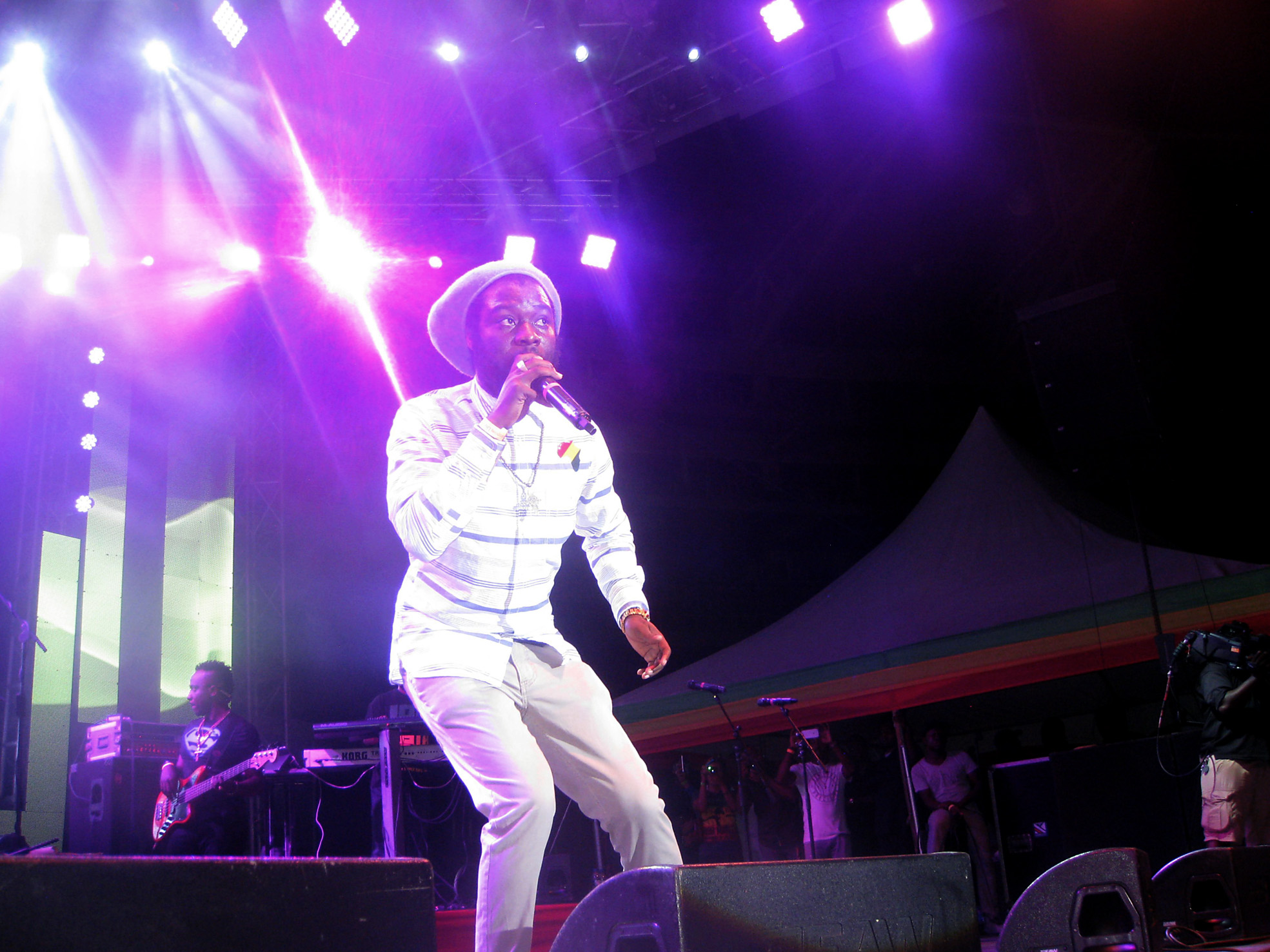 Cocoa Tea, with far smoother vocals, included Gregory Isaacs' Number One and a touch of Beres Hammond in his set, along with his own Tune In and She Loves Me Now, as well as infusing well-known R & B songs on reggae rhythms. While he encouraged the audience to sing, which members of the crowd did willingly, it was clear that Cocoa Tea was upset, as he flatly said Digicel should not call him next year to do the concert. He repeated the statement in song, ad libbing the lyrics to good effect.