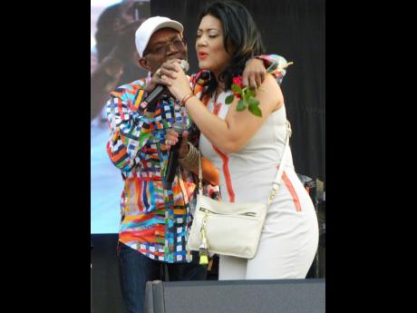 Beres Hammond (left) invites Tessanne Chin to join him on stage to perform her version of Step Aside.