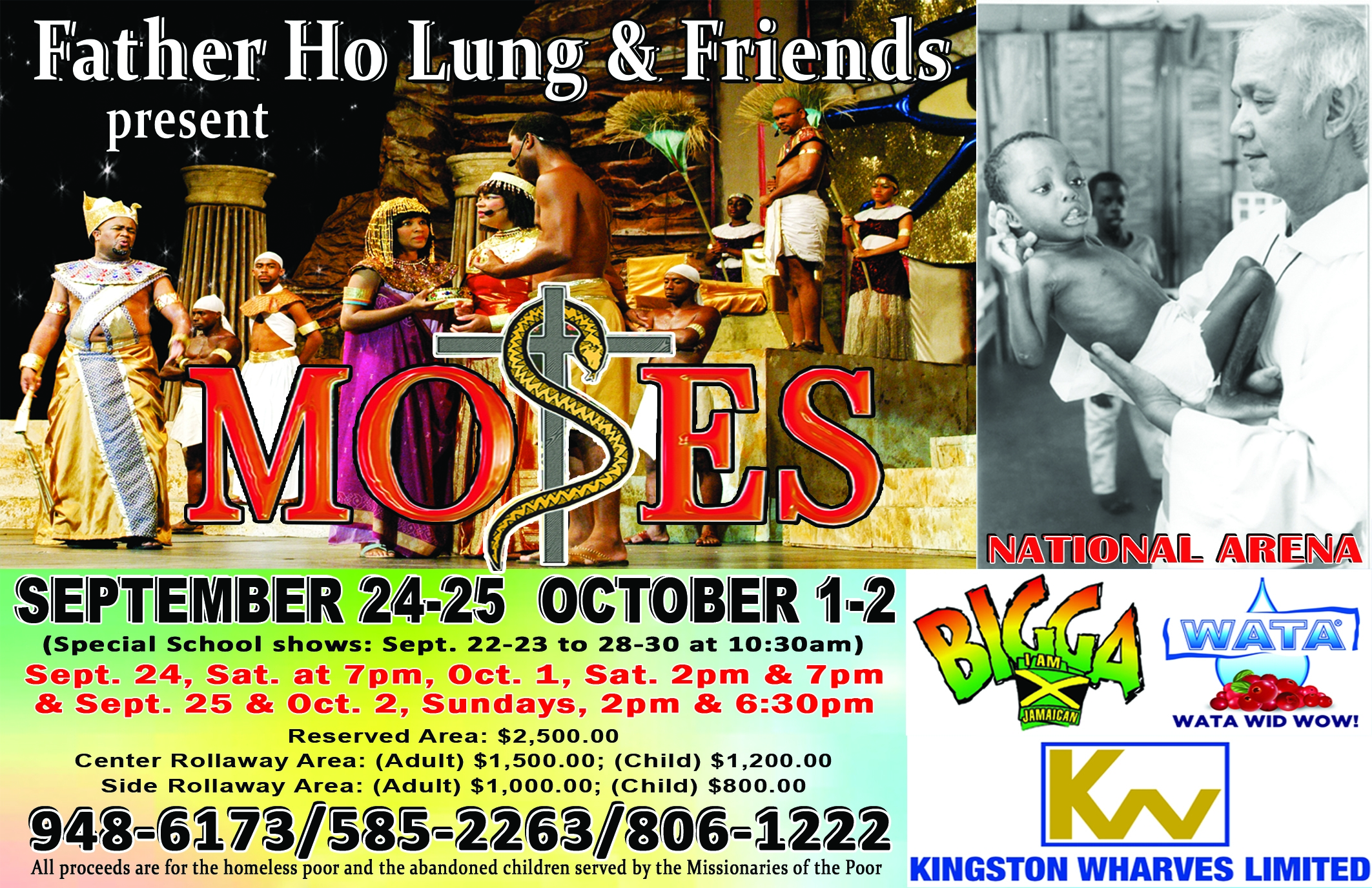 Moses opens at the National Arena on September 24 and will run until October 2. Special shows for schools will be held from September 22-23 and September 28-30. Ticket prices vary from $1,000-$2,500 for adults, while for children, tickets are between $800 and $1,200. Interested persons are being asked to call 948-6173 or 948-0286 for tickets as well as for any additional information.