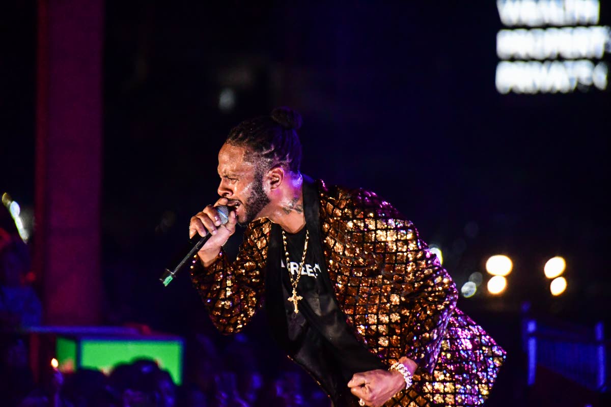Quickly returning to their “We want Dexta!” chant, the crowd’s demands were met at 12:08 a.m. when the Call Me If singer emerged from the a shadow of blue smoke in his gold suit.