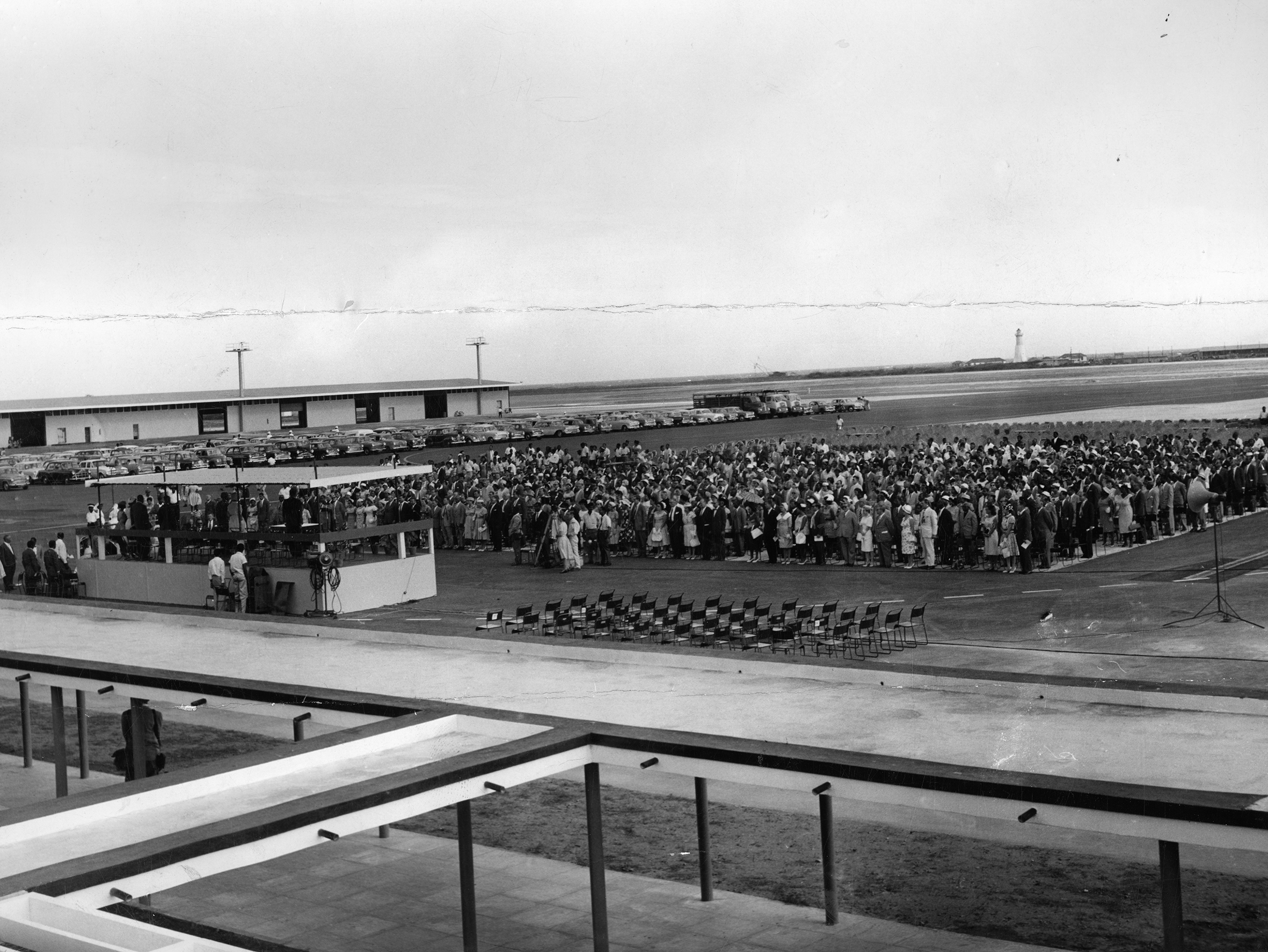 Over 4,000 persons, including the Governor, the Federal Minister of Communications and Works, the Hon. Andrew Rose (who flew in, from the Federal capital especially for the opening), Cabinet Ministers, members of the Legislature, civil service officials, business and professional men and just ordinary folk proud of their new gateway to the Caribbean, crowded on to the airport's apron to witness the ceremonial opening.