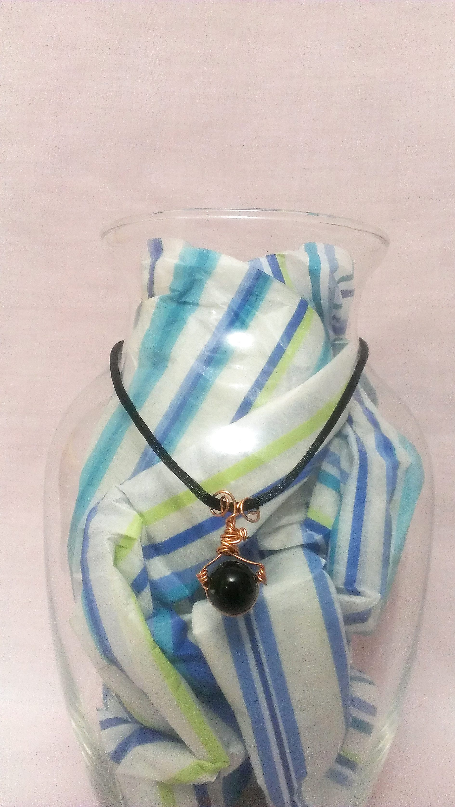 "My first piece was a glass bead wrapped in copper wire to form a pendant. I was fooling around with the materials in an attempt to follow a tutorial; however, I laugh because the pendant did not come out at all like the piece featured in the tutorial. In fact, the tutorial was for earrings but my first effort was so off that I did not attempt to do a pair. At the time I didn't know much about wire gauges and the proper tools to be used. I was such a rookie. However, even though the piece came out incorrect, it was perfectly flawed to me. I'm proud of it and find it artistic in its own way," she reminisced.