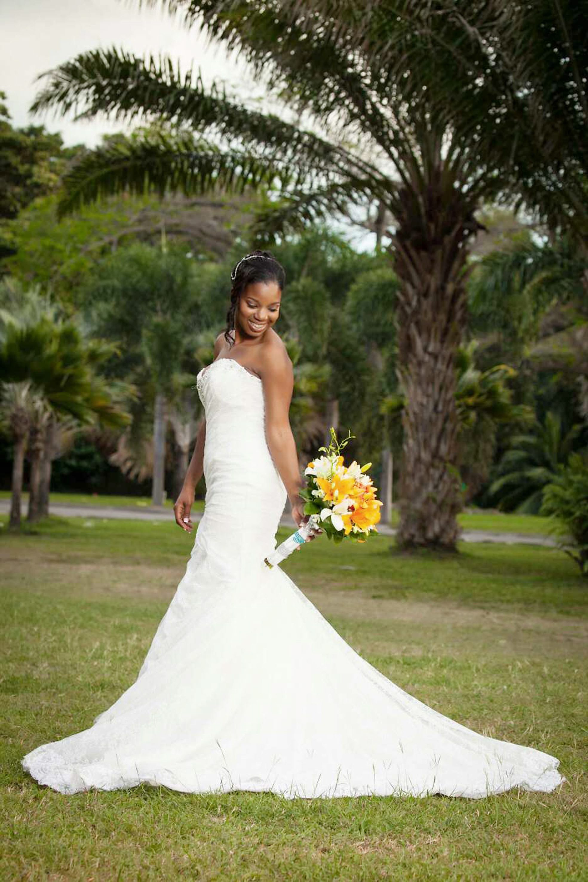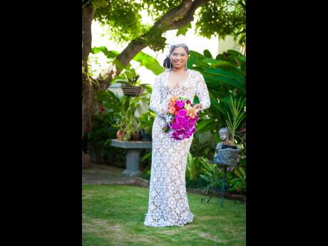 I fell in love with the texture and details of the crotchet- not only was it elegant, but the nude peeping through gave me the pear shaped silhouette that I wanted. I found out I could get it made here. Sara Stanford of Bliss Bridal imported all the bling to go around the neck line and to be used for my shoulders,I also had to import the nude liner and threads. I found a woman who specialised in crotchet for more than 30 years and could make my dream come true. It took her a month to produce the dress. My aunt, Joan Prince, tailored the shape to fit - as crotchet doesn't stretch and has to be hand sewn for alterations. Was I happy with the end result? No I was ecstatic - the night before, when I did my final fitting I was in tears. I really don't think anyone should settle, try many dresses. Jamaica has great talent and my dress is proof!