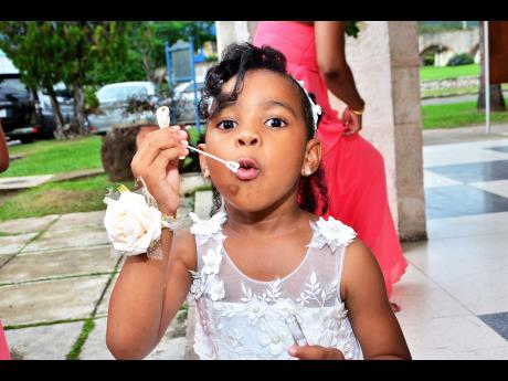 After exchanging vows and a candle ceremony, the groom kissed his bride and they both took their first steps as husband and wife, with bubbles and kisses blown their way.