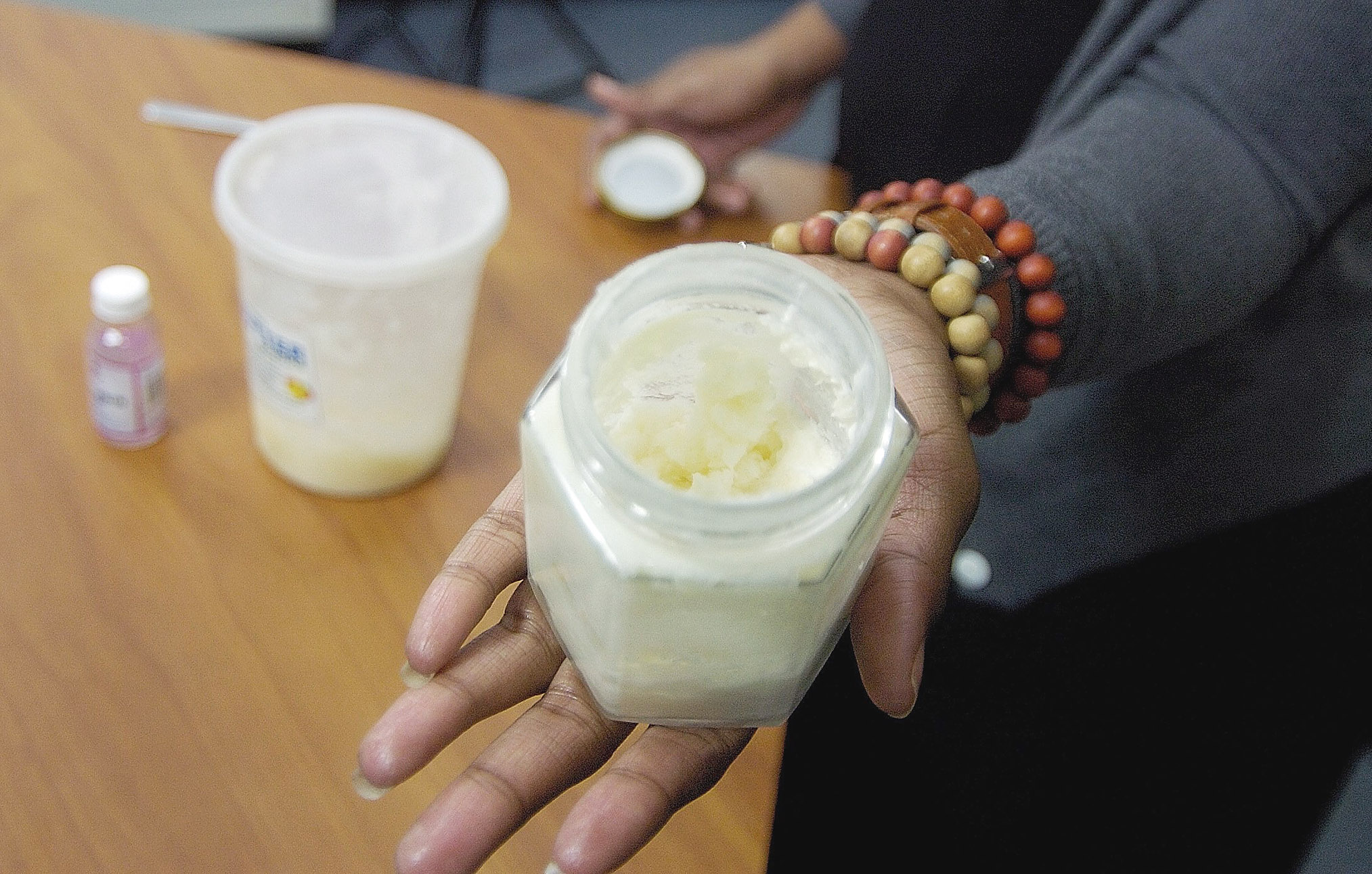 I then had the light-bulb moment to assist her. Whipping the mango butter and glycerin eto make a moisturiser.