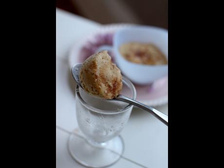 2. Coat two eight-ounce mugs with cooking spray. Spoon a heaping tablespoon of batter into each mug. Top each with one teaspoon of the cream cheese and a sprinkle of cinnamon. Divide the remaining batter among the two mugs. Sprinkle with cinnamon and the remaining teaspoon of brown sugar.