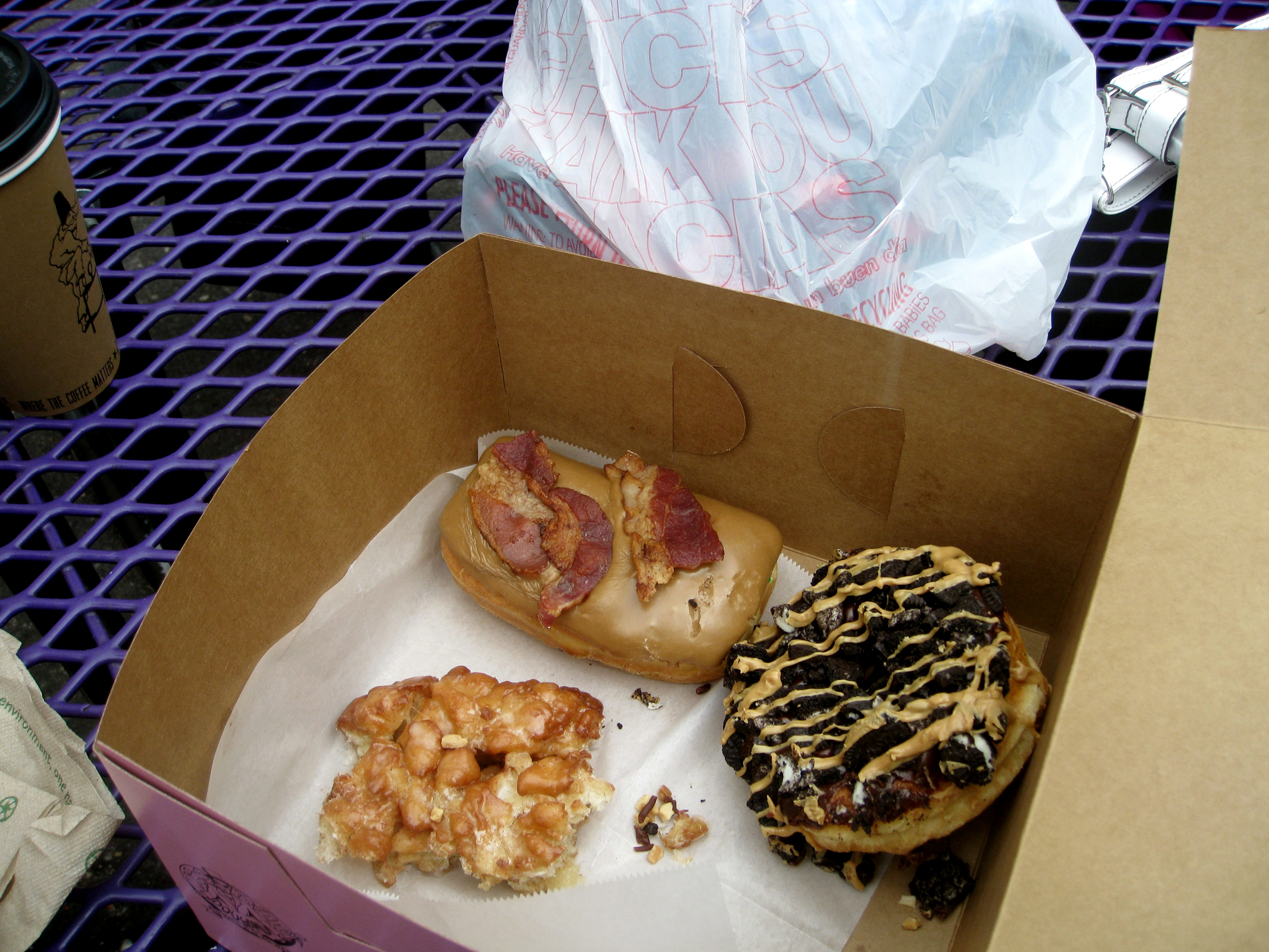 Now, everyone who's been to Portland will tell you about Voodoo Doughnut. For days at the OCC I saw people walking around with large pink boxes with Voodoo Doughnut printed on the side and I was curious to find out what it was.