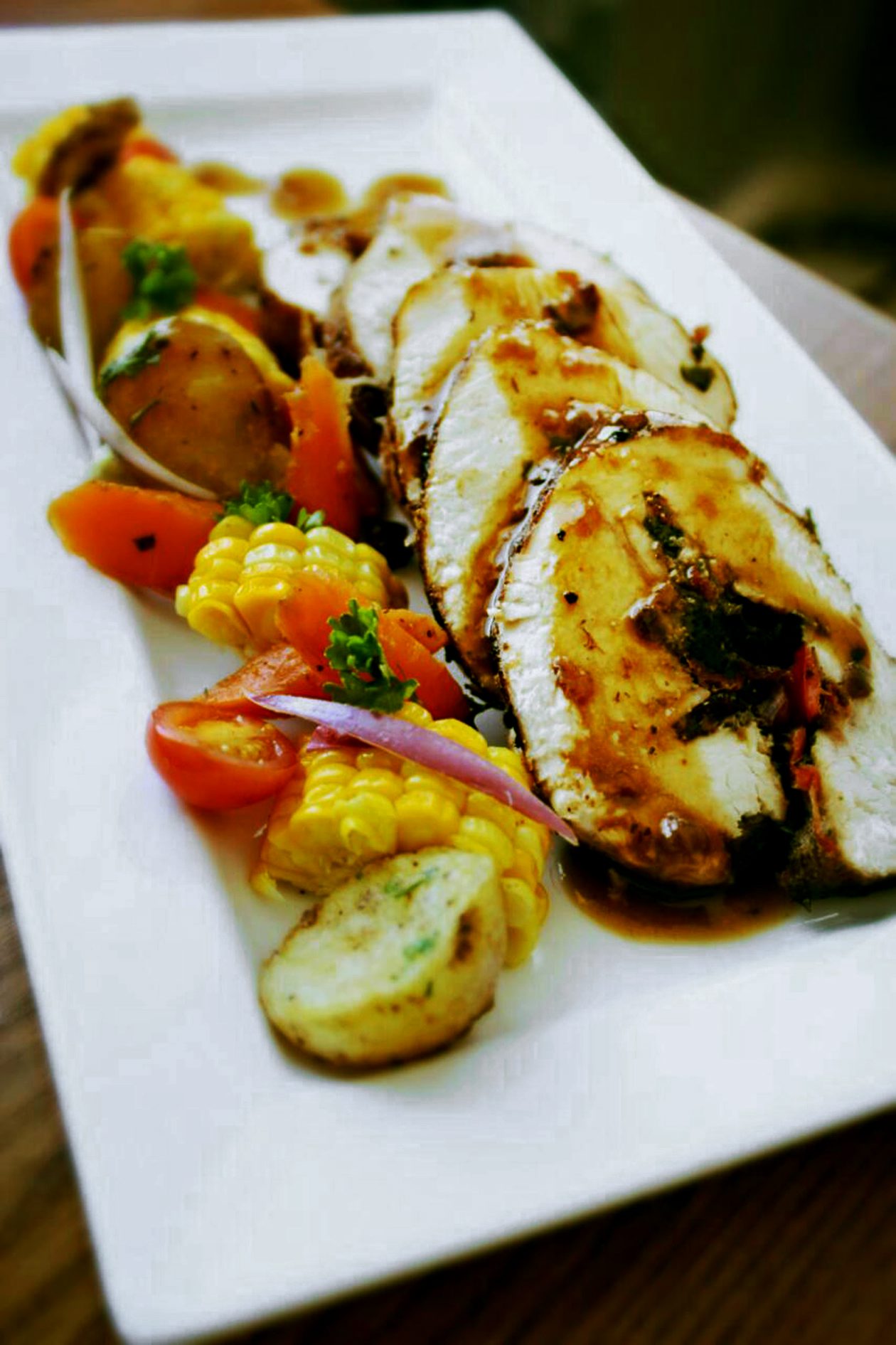 Marinated turkey roulade with spinach and cranberry