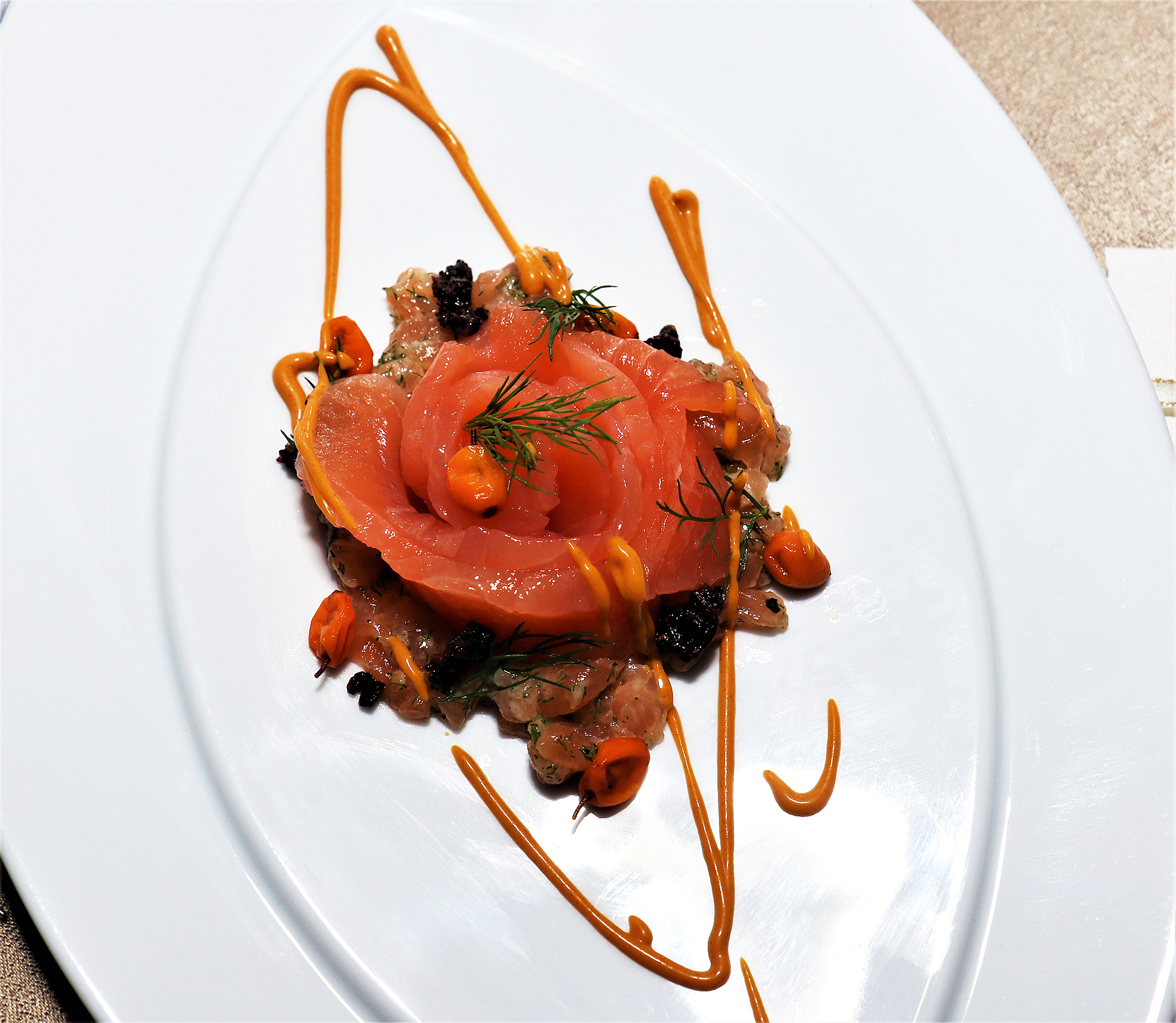 In photo: Cured salmon, sea urchin, sea buckthorn and dill.-Ashley Anguin.