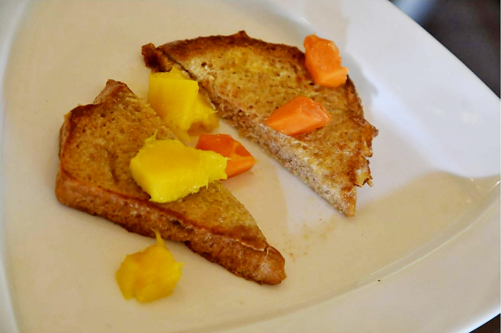 Submerge the slice of bread into the egg mixture, flip over and repeat.