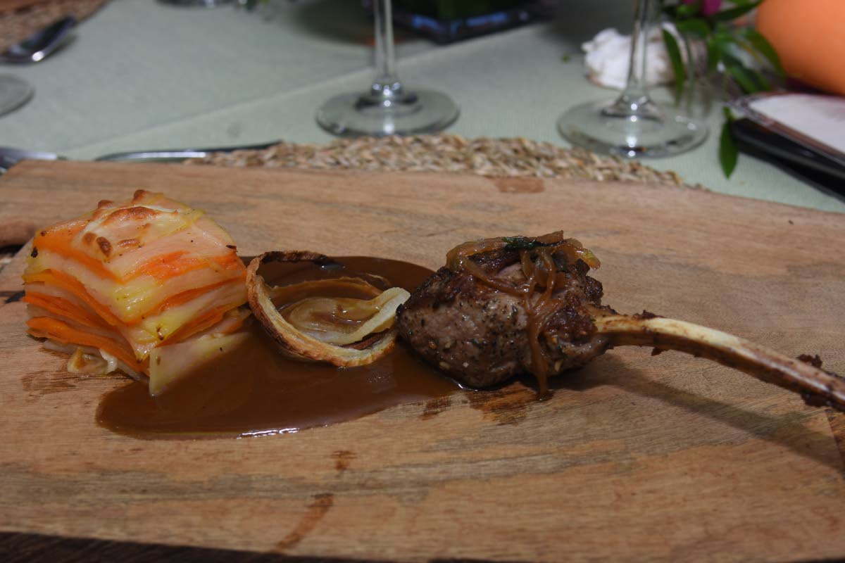 By the time it came around to the fourth course, the aromas of cherries, cassis, violet notes, followed by a palate of juicy black fruit flavours, balanced acidity, firm tannins from the Cabernet Franc, were awaiting the fabulously done lamb loin, which was served with potato and carrot mille-feuille, topped off with rosemary tamarind sauce.