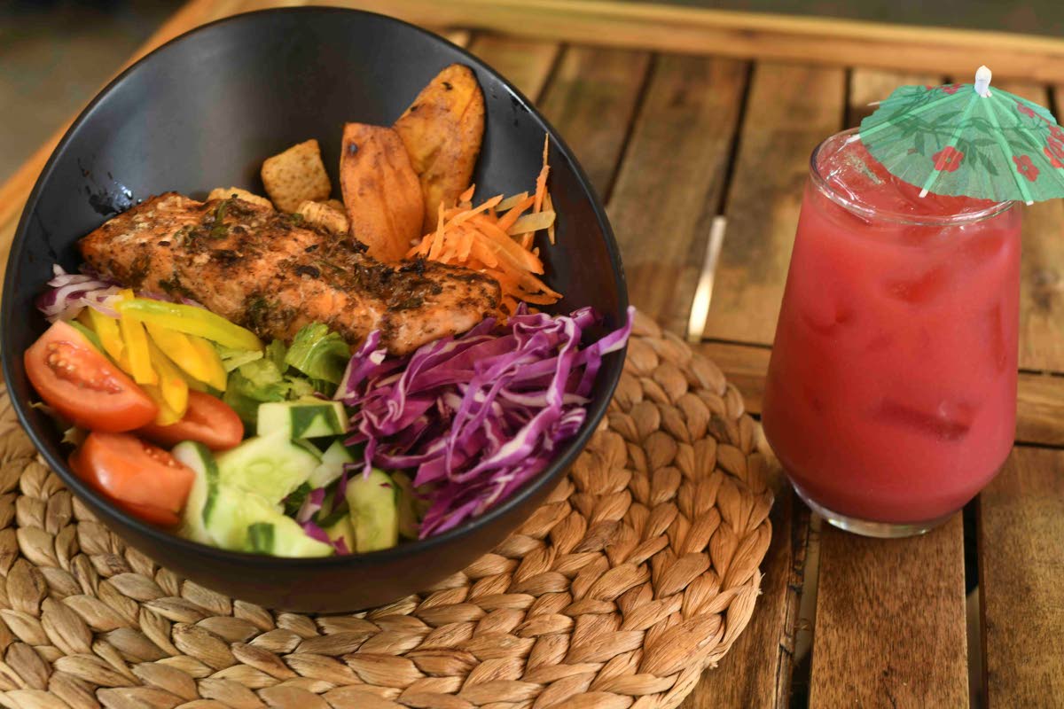 Explaining the composition of the just-arrived menu items, she said: “You choose a base, which would be a wrap, salad or bowl. Then you decide on your protein option, that’s salmon, chicken, beef and shrimp”.