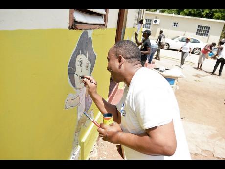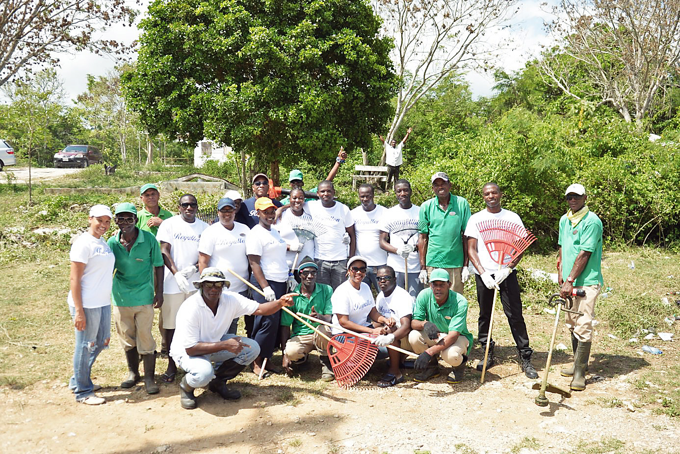 Staff members from Royalton White Sands at the Martha Brae Infant School after labouring all day