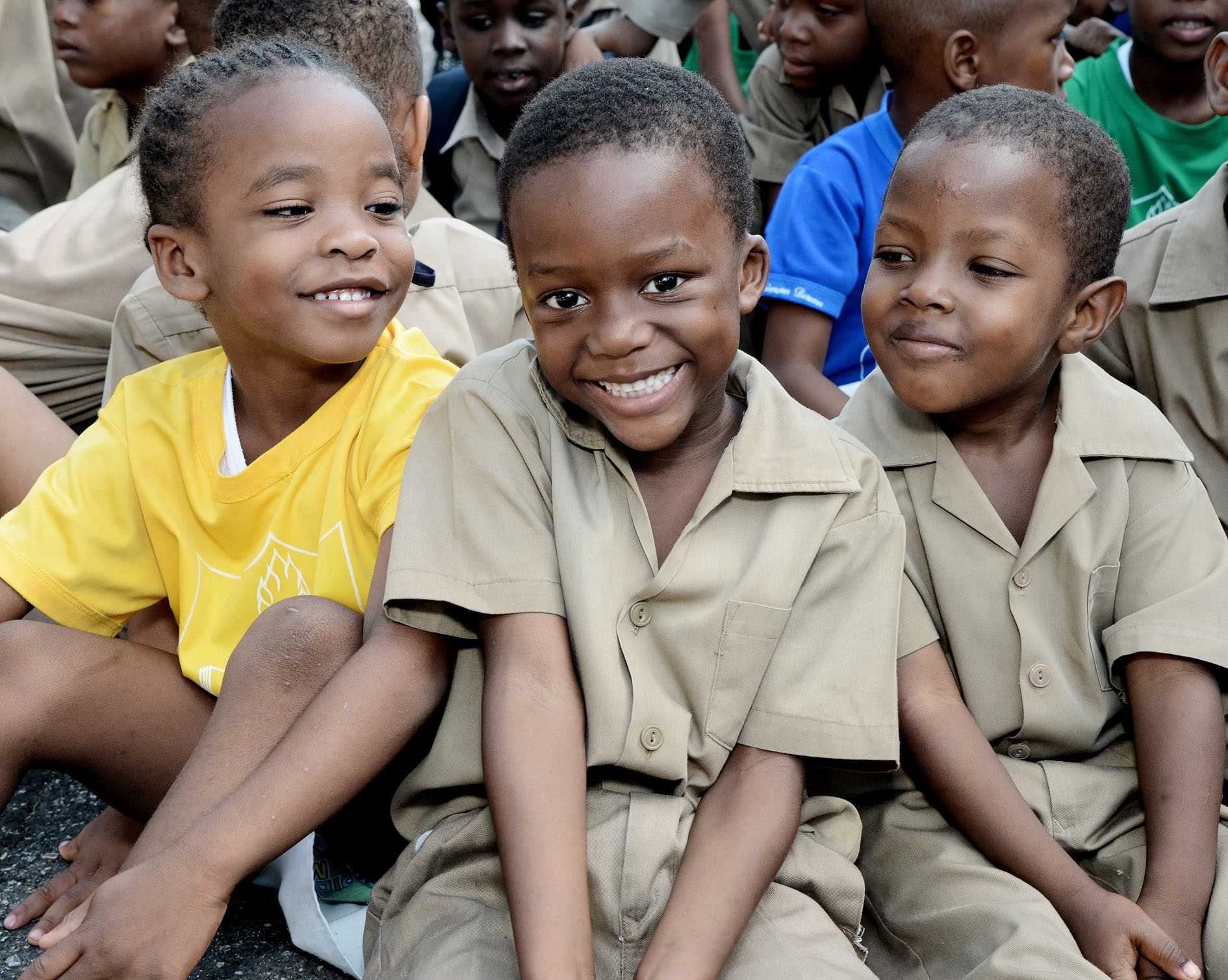 Smiling students at Holy Family Primary School during devotion for Teachers' Day at the school yesterday.