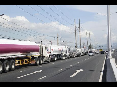 Scores of petroleum tanker drivers parked their units along both sides of the Marcus Garvey Drive dual carriageway in protest from early yesterday morning, which caused a disruption in delivery by some drivers.
