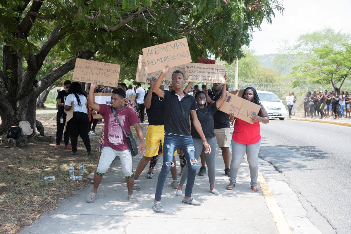 Student and staff protesters remained tight-lipped, declining to speak with The Gleaner. The only sounds coming from the few uncovered mouths were chants as part of an African-themed performance.