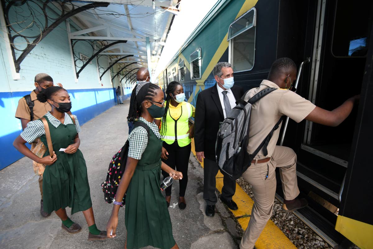 In welcoming the students on Monday, outgoing Transport Minister Robert Montague was not deterred by the low ridership aboard the two trains, citing that the non-collection of cards by some students from the participating schools had contributed to the situation.