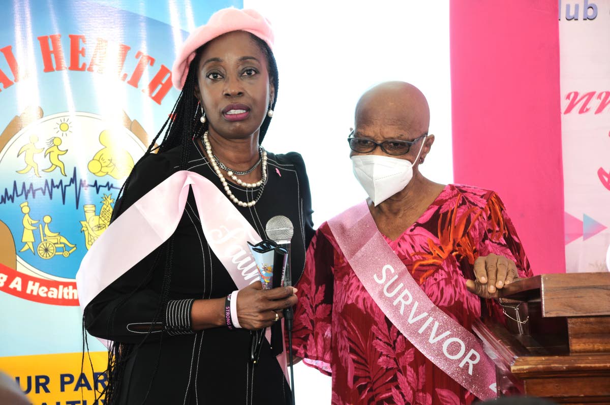Breast cancer committee chair, Kiwanis Club of Providence Montego Bay, Nadine Spence (left) and breast cancer survivor nurse Llauna Humphries.