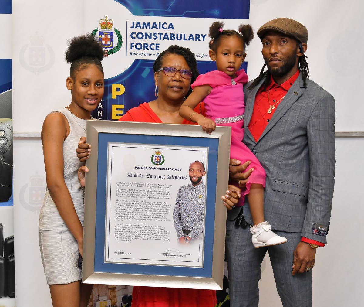 After 14 years, Andrew Richards, the man who pulled a drowned policeman from the Rio Cobre after he fell in while chasing gunmen along the sippery river bank in Gordon Pen, St Catherine, was honoured by the Jamaica Constabulary Force (JCF) last Thursday.