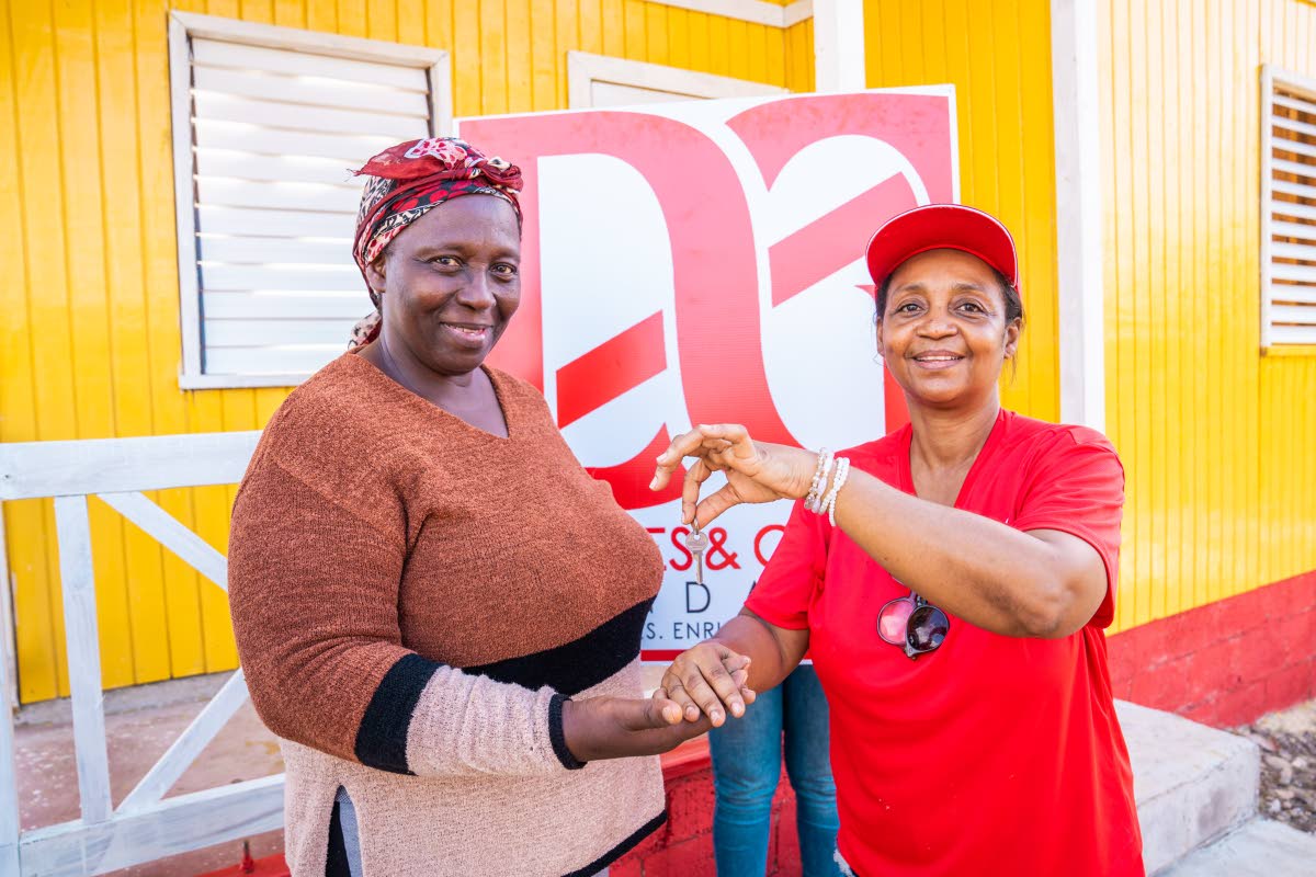 New homeowner Margaret Green (left) beams with joy as she receives the keys to her new home from Totlyn Brown-Robb, D&G Foundation administrator, marking a fresh start for her family this Christmas.