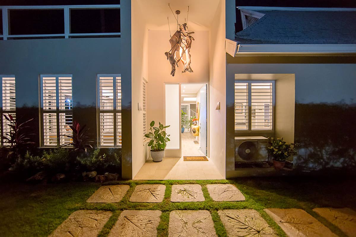 The ceramic tile floors mimic real wood; walls are coloured in soothing light grey; louvred windows breathe in the northeast trade winds, and dashing multiple recessed ceilings keep eyes riveted upwards.