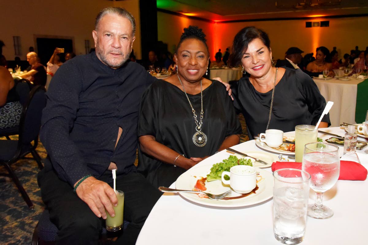 Minister of Culture, Gender, Entertainment and Sport Olivia Grange is flanked by Tom and Rose Tavares-Finson at the Watch Party: Reggae on the Pier, held at The Jamaica Pegasus hotel, Knutsford Boulevard, New Kingston, on February 27.