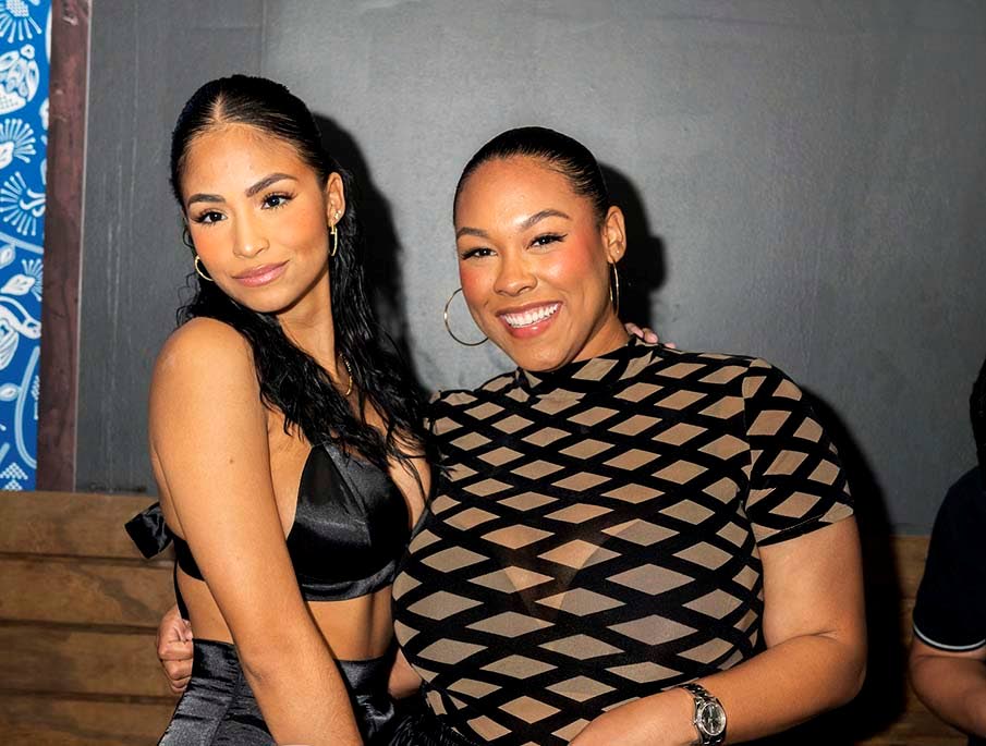 Donning matching looks, Kourtney (left) and Paige Lawrence are all smiles for our camera.