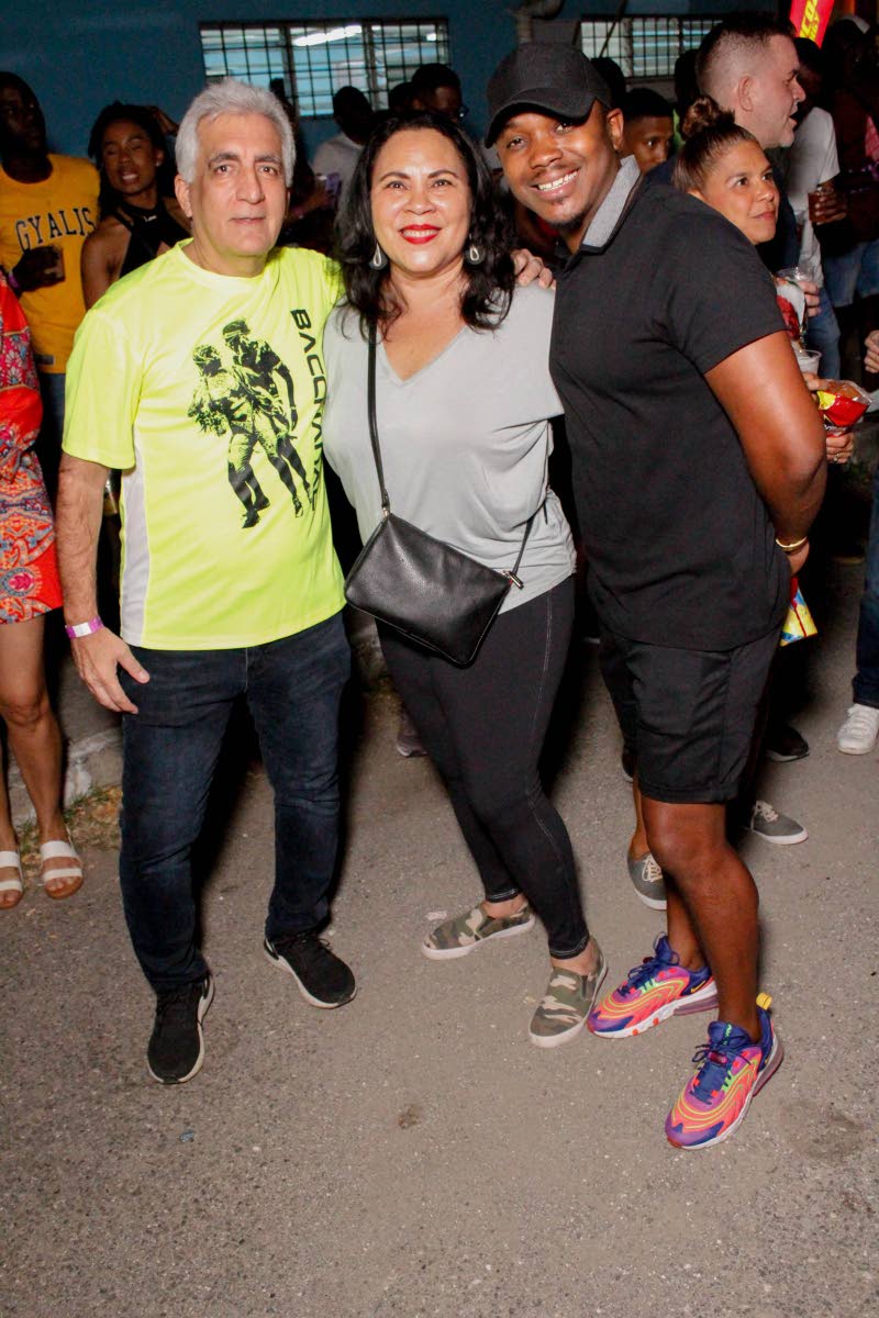 Angie Ammar (centre), is flanked by husband Michael Ammar Jr (left), co-director of Bacchanal Jamaica, and Regional Marketing Manager for J. Wray & Nephew Ltd, Kamal Powell.