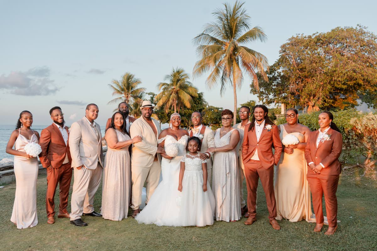 Following a year and a half of planning, the pair got married on May 20 at The Palms at Rose Hall in Montego Bay, Jamaica. Recalling their magical night, they shared that the highlight of their evening was seeing their entire family waving custom-made Jamaican flags adorned with their wedding hashtag all around the room.