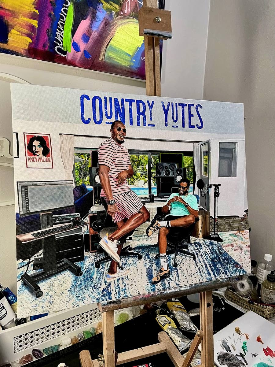 Two of her favourite pieces include the first bottle painting she ever did for a couple’s wedding day and a commissioned painting of Usain Bolt and Nugent Walker in a music studio. “I’ll forever love the first bottle painting. The moment that couple chose to have painted was absolutely beautiful. And the commissioned piece is one of my favourites because it was the most detailed picture that I’ve been commissioned to paint so far. It involved so many intricate aspects and I had the most amazing time painting every single thing, from the plants peeking through in the far background outside, to the textured detail on the rug in the foreground. It turned about to be an absolutely breathtaking piece,” the artist highlighted.