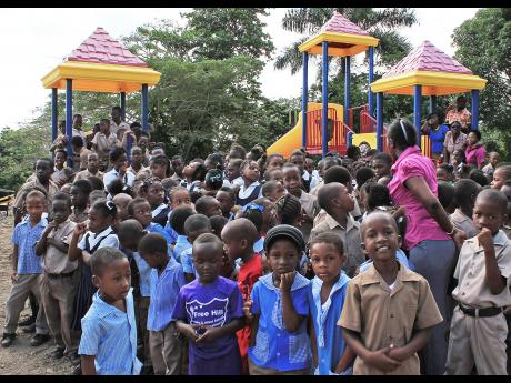 Children at Free Hill Primary and Infant School in St Mary last week received a new play area worth US$70,000 courtesy of US-based charity the Premier Foundation