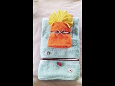 Vassell describes herself as passionate, assertive, hard working and having good work ethics. She is a professional make-up artist who received hands-on training in food and beverage management. She started the towel decor business in November of last year while working as a volunteer facilitator with the Jamaica 4H Club and sugar transformation unit in St Catherine. Since that time, she has developed a steady clientele and is earning respectable monthly wages from the venture. She says she now passes on the skill to the youth for whom she has the responsibility of training.