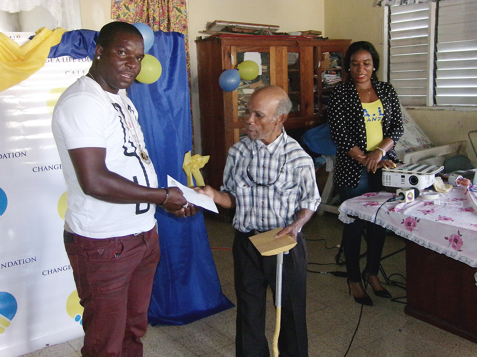 Among the recipients were 72-year-old Leroy Gray, who is visually impaired. He received $20,000 from CALF and an additional $20,000 from Derron Fisher of Digi Gas; a mother and her four children, aged six to 14 years, from Arnett Gardens in Kingston received J$40,000 and US$150; Bonnie Barrett, who has a physical disability, received a cheque for $35,000; Kadene Ricketts, who is wheelchair-bound, received a voucher for 10 bags of chicken feed and 50 baby chicks. She had earlier benefited from a similar donation from the group. Wekel Sinclair, who lost her house during a fire, received a voucher for a queen-sized bed; and schoolboy Ricardo Bell received a pair of sneakers from businessman Andrew Morsby of Jamdung Jerk and Tings, plus $5,000 from retired Jamaica Defence Force officer Hugh-Paul Roberts, along with $20,000 from CALF.