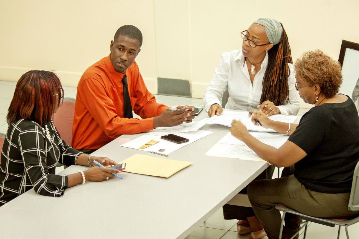 Phillip Robinson at Edna Manley College with, from left: Claudia Woon Chin, registrar; Miriam Smith, dean School of Visual Arts; and Susan Lee Quee, director of studies, School of Visual Arts.