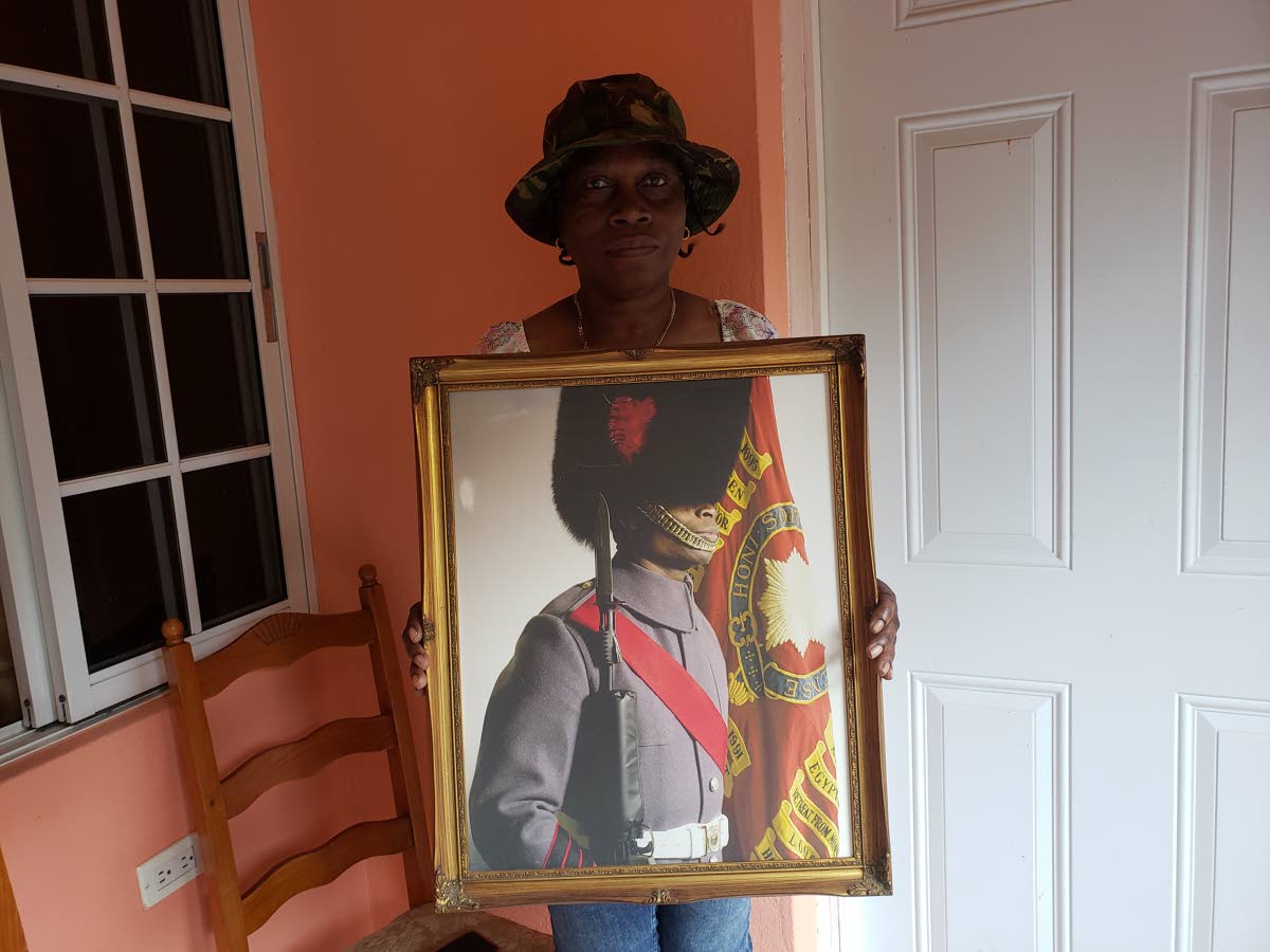 Kirtland Gill’s mother, Castrolyn Scott, proudly displays a photo of her son who was chosen to head the oldest regiment in the British Army.
