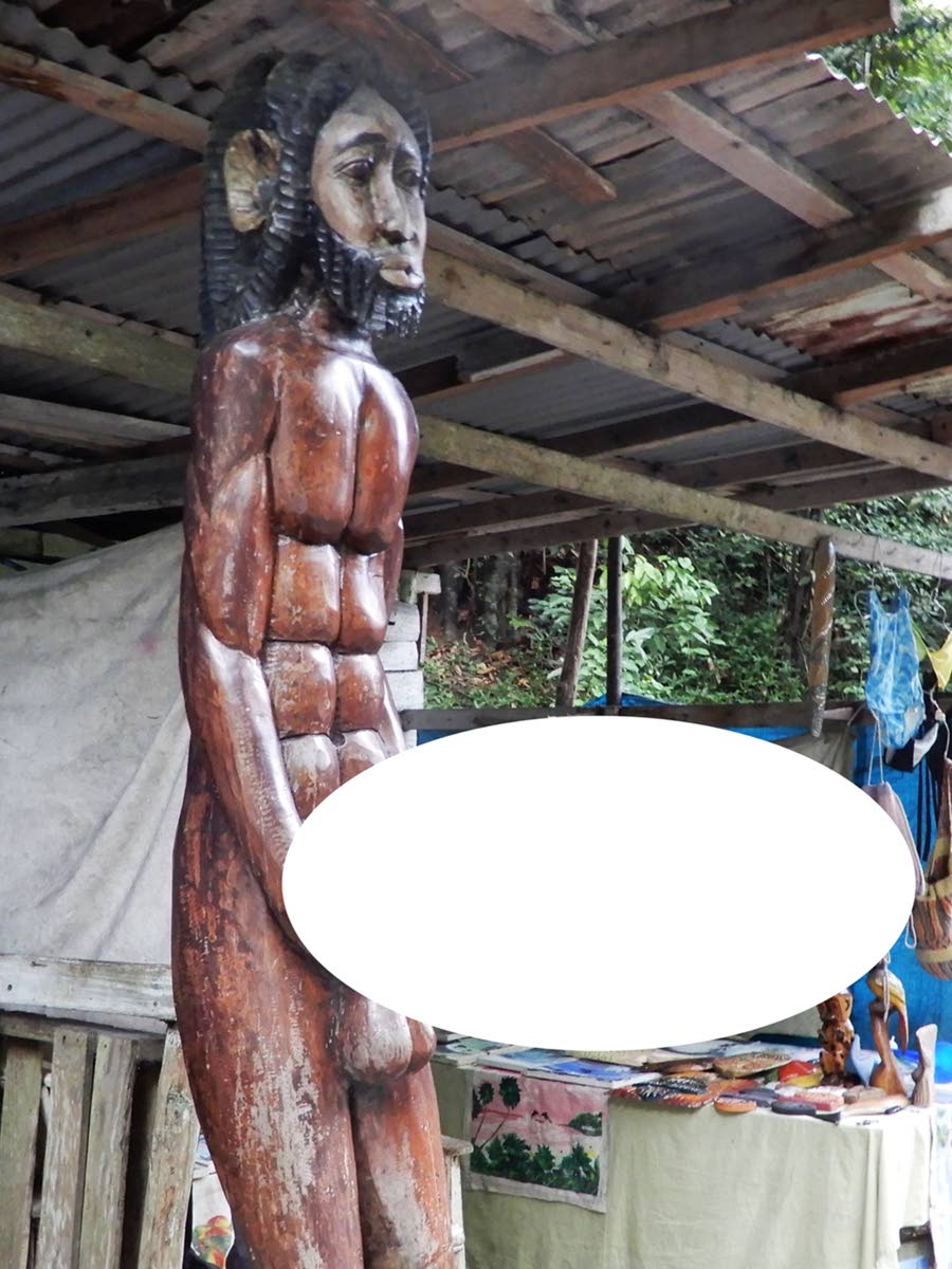 “When I just start to make them, Barbara Gloudon passed by and said if I should make those things, I have to have it in the back; which I would comply. But by she get to town and she go on the radio, she start talk about it – ‘there is this big wood man pointing to the road’, and things like that.