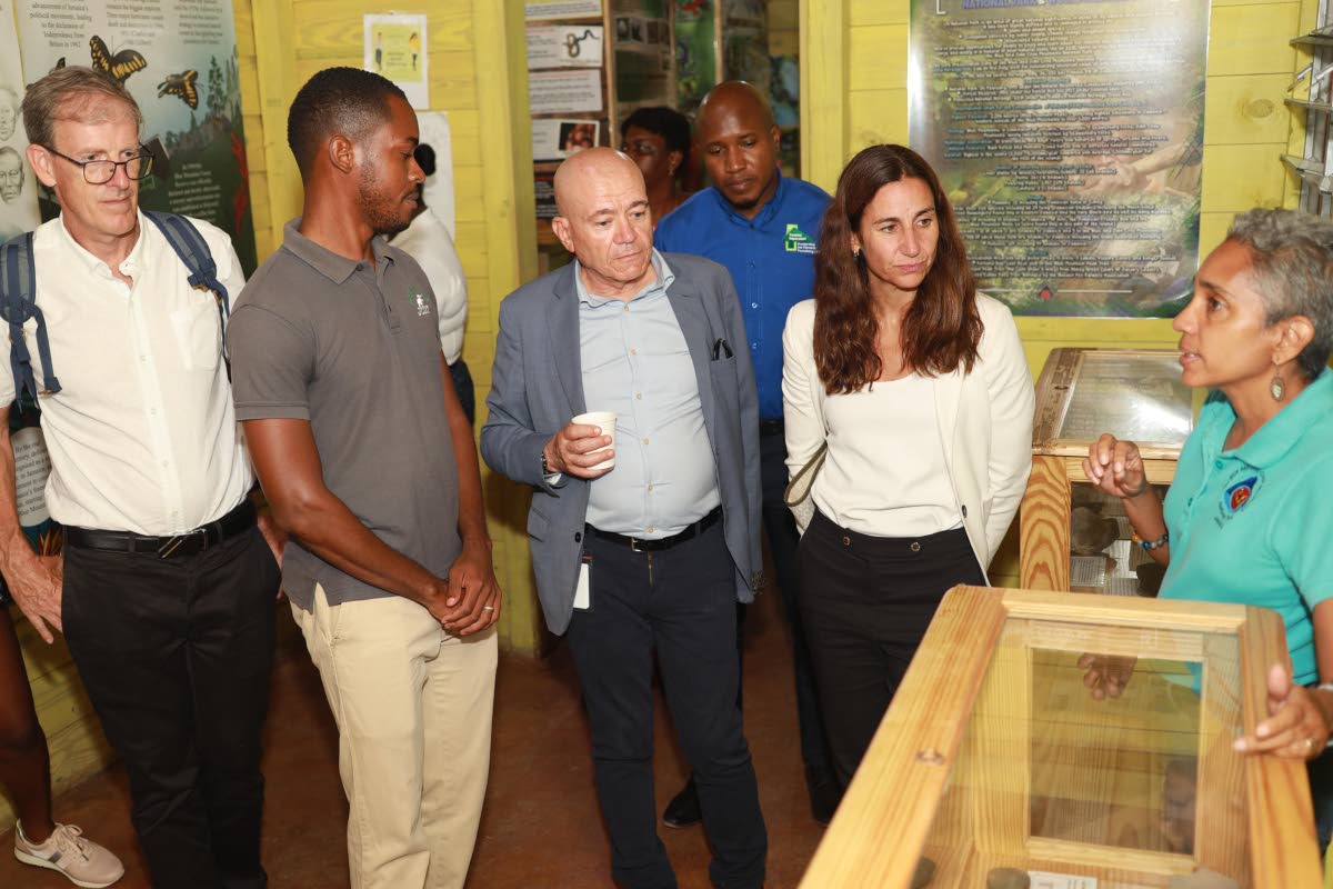 JCDT Executive Director, Dr. Susan Otuokon (first right) gives a tour to (first left) Programme officer for the EU delegation to Jamaica, Belize, The Bahamas, Turks and Caicos and Cayman Islands, Andre Fache, (third left) Head of Cooperation for the EU Del