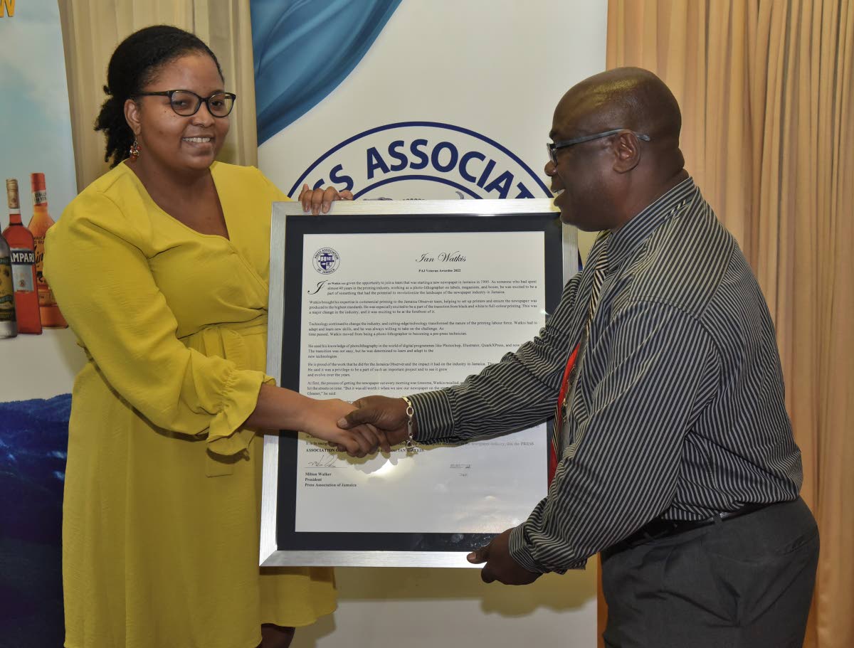 The Press Association of Jamaica (PAJ) honoured five veteran media workers – Pat Riley, Ian Watkis, Keith Campbell, Maxine Shrouder, and Clevans Wilson – at its annual Veterans’ Luncheon held at the Alhambra Inn in Kingston on Wednesday. Here are highlights of the awardees collecting their citations.