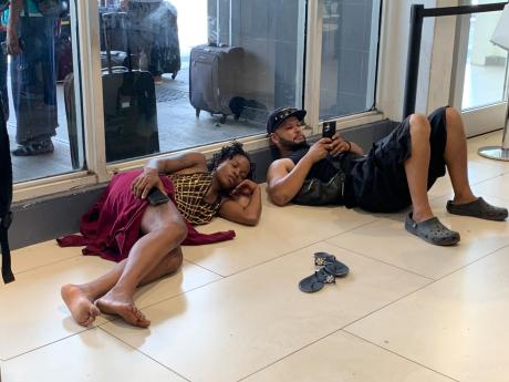 Passengers stranded at the Sangster International Airport today. - Ashley Anguin photo