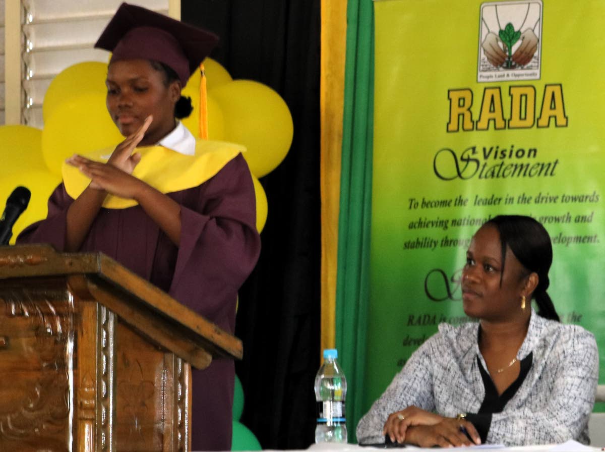 They were named the most outstanding male and female graduates at the graduation ceremony of the Caribbean Christian Centre for the Deaf’s Climate Smart Agriculture Greenhouse Production Training, held recently at the Knockpatrick campus.