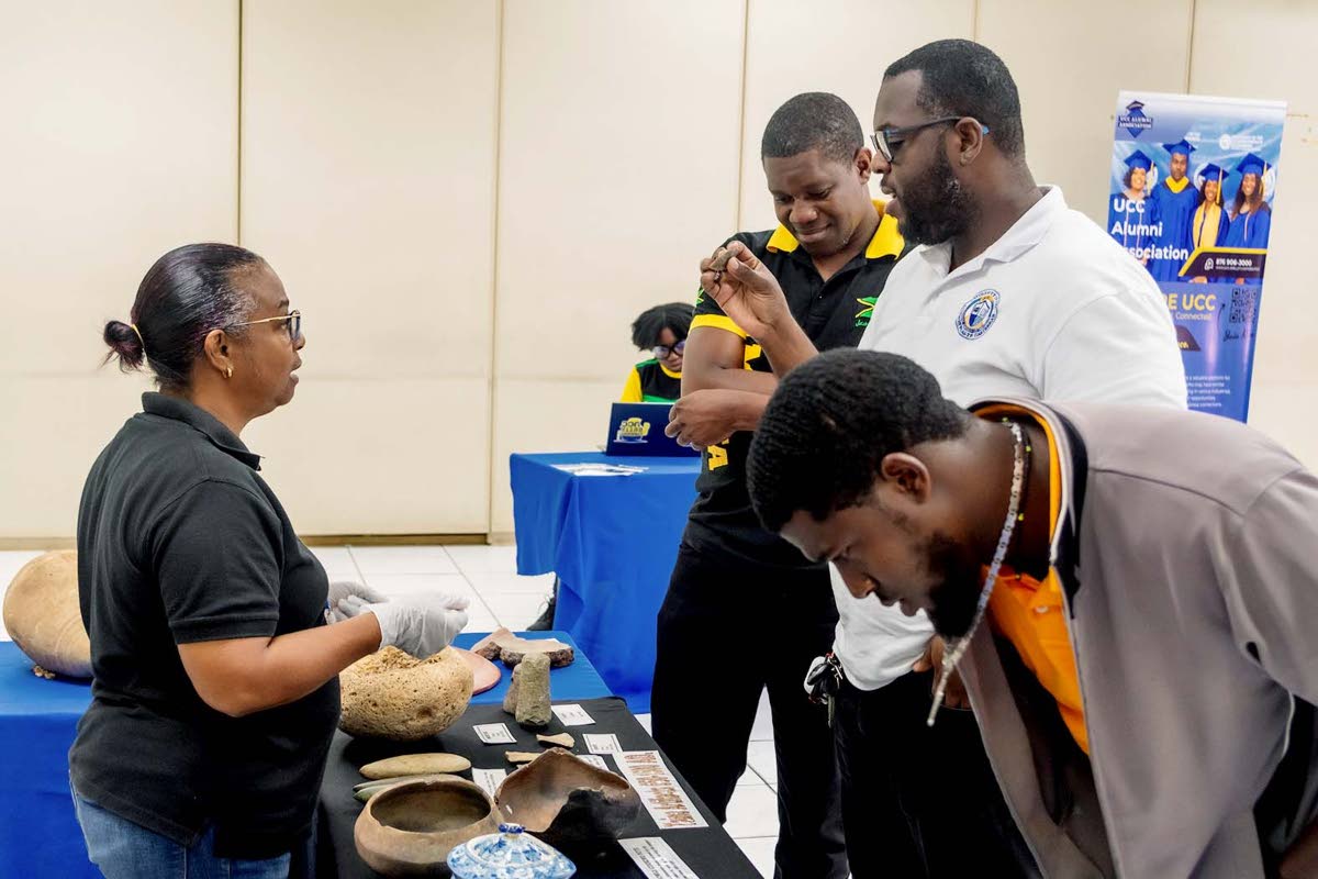 At the Worthington Avenue campus in St Andrew, the Jamaica National Heritage Trust (JNHT) set up an exhibition on Jamaican heritage featuring artefacts of Taino, African and English peoples, dating pre-1850 and sourced from archaeological digs across the island. The display was supplemented by the information provided by JNHT curator, Ann-Marie Howard-Brown, who is an archaeologist and was involved in several of the digs where the artefacts on display were found. The exhibits created quite a lot of interest and discussion among staff and students, particularly around the issue of slavery. As an institution of higher education, the UCC aims to provide an intellectually stimulating environment where discussions on topics of a sensitive nature can be held and opposing views voiced in a respectful manner. The air was lightened with a lunch-time karaoke session which saw students, staff and faculty engaged in the singing of festival and other popular reggae songs. Traditional Jamaican pastries were on sale and some students tasted ‘toto’ for the first time.